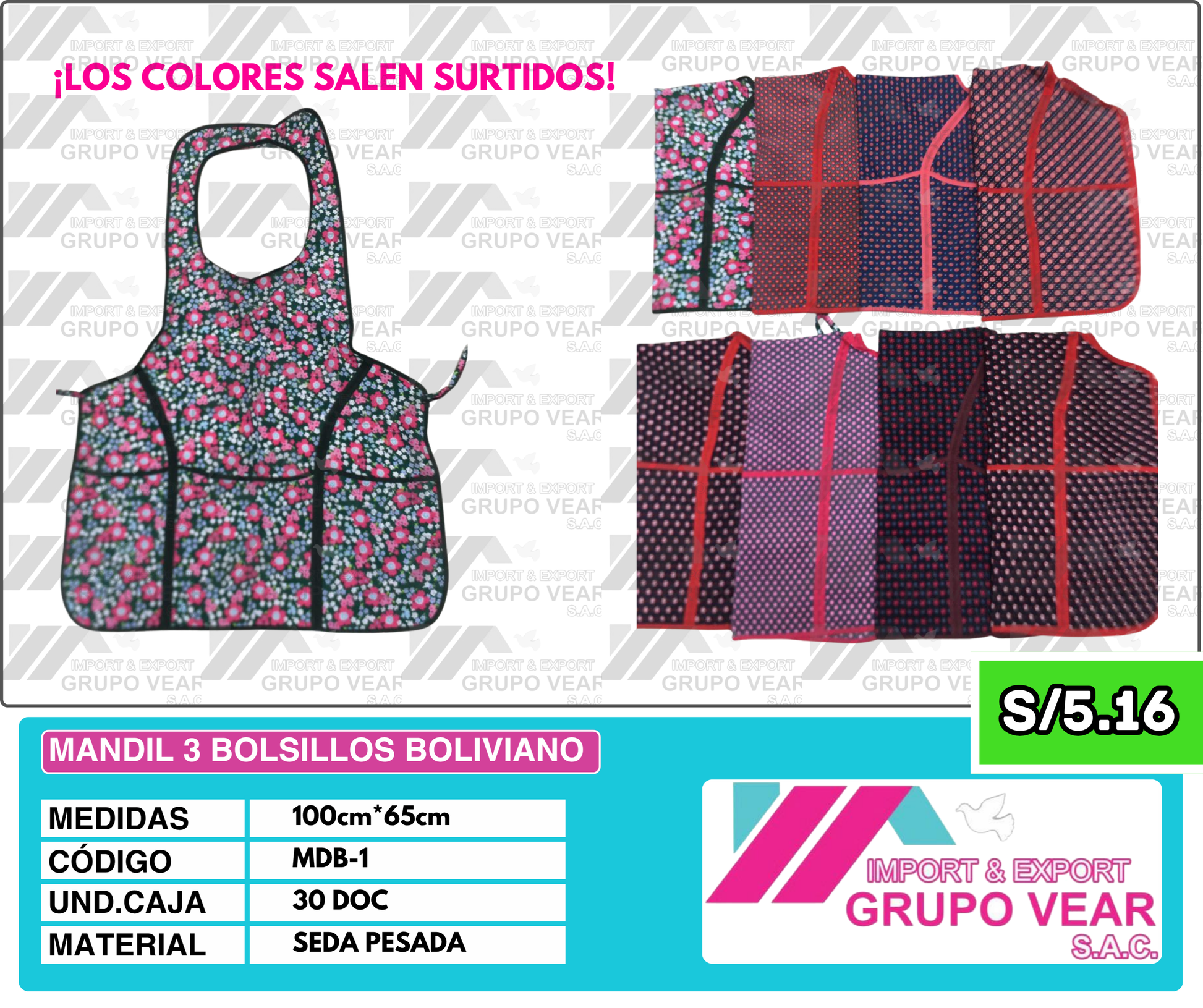 MANDIL 3 BOLSILLOS BOLIVIANO (30 DOC)